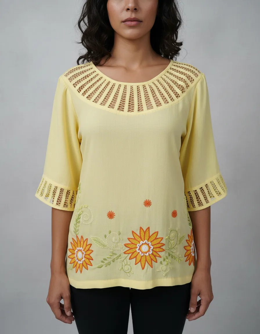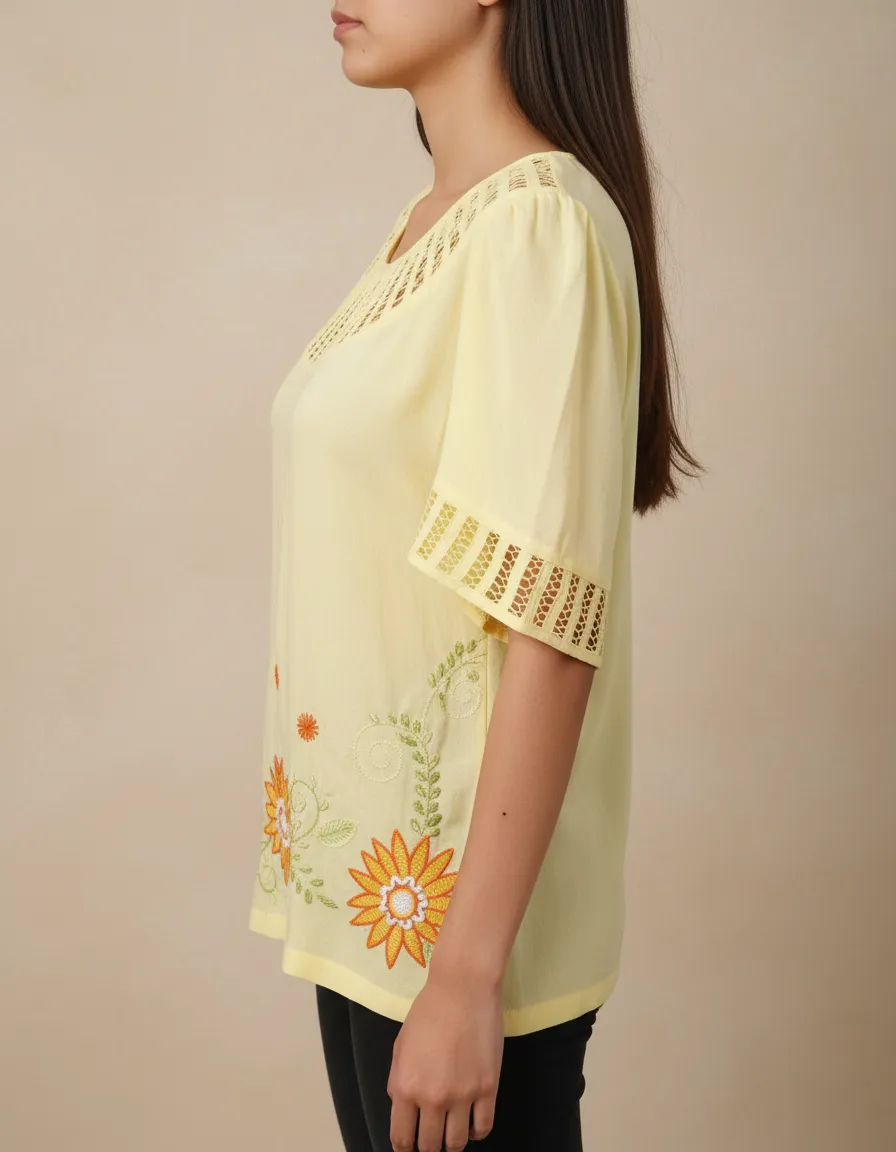 La Blusa Girasol Blanco Bordados Cartago Edis en talla 2XL es la elección perfecta para la mujer moderna que busca elegancia y comodidad. Confeccionada en chalis, este modelo destaca por su suavidad y ligereza, ideal para los días cálidos de primavera y verano. Su color blanco puro aporta frescura y versatilidad, permitiendo combinarla fácilmente con diferentes estilos de prendas.