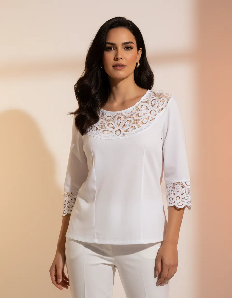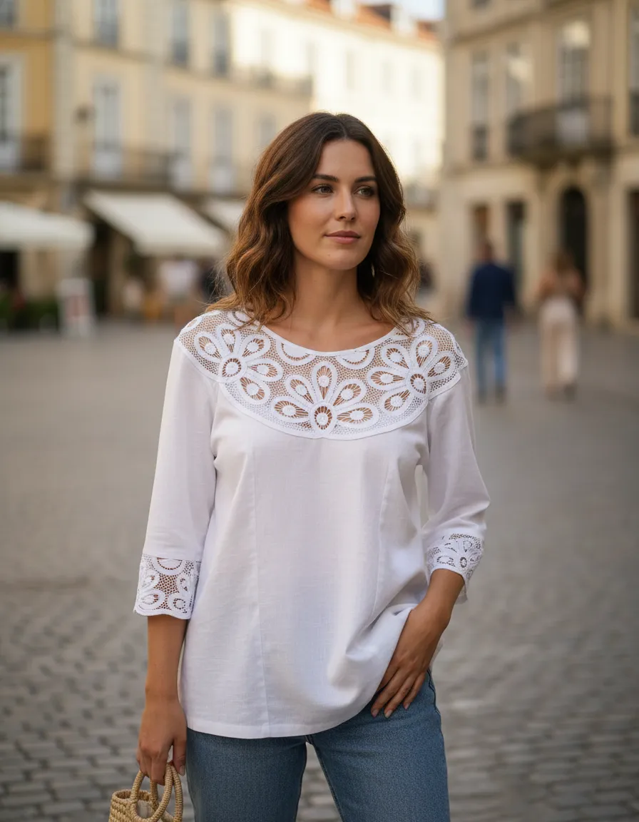 La Blusa Karsu Blanco Bordados Cartago Edis es la elección perfecta para la mujer moderna que busca un estilo elegante y romántico. Confeccionada en chalis, este modelo ofrece una suavidad y ligereza ideales para la temporada de primavera/verano. Su diseño camisero y el tipo de cuello le otorgan un toque clásico, mientras que las mangas 3/4 en estilo camiseras/obispo añaden un aire sofisticado.