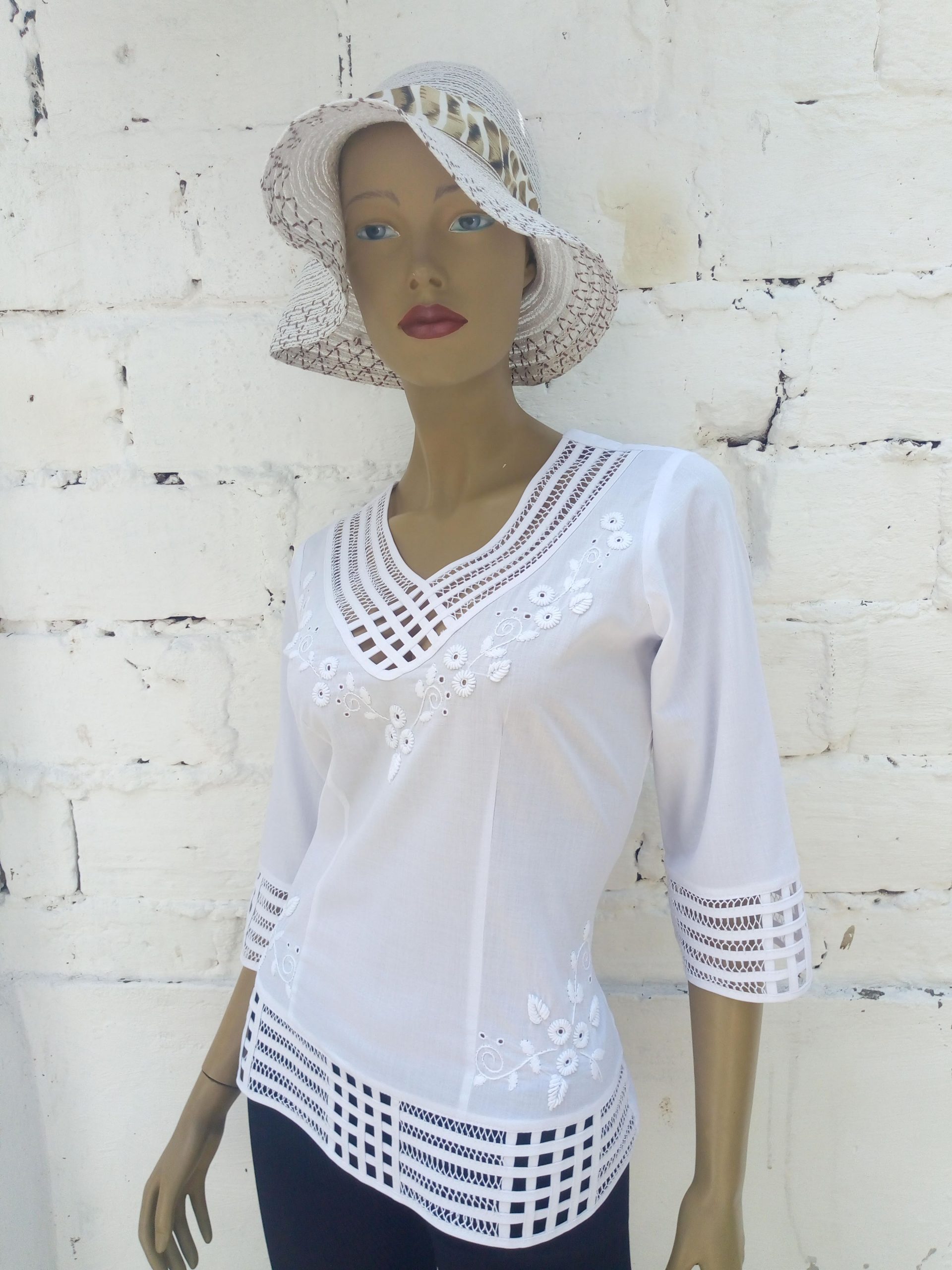 La blusa Maite blanco pastel Bordados Cartago Edis es una prenda diseñada para mujeres adultas que buscan lucir elegantes y sofisticadas. Fabricada con lino, un material ligero y suave al tacto, esta blusa garantiza comodidad y frescura durante la temporada de primavera/verano.