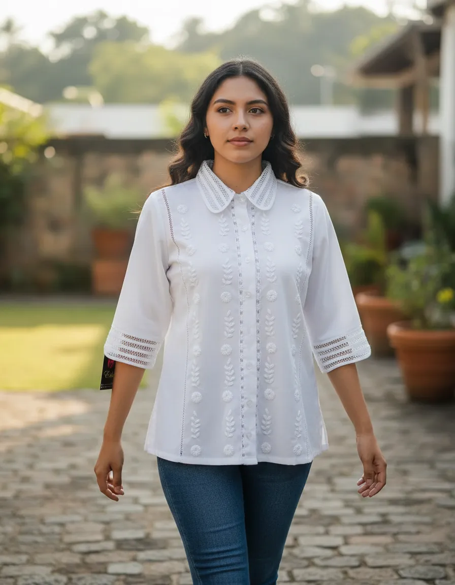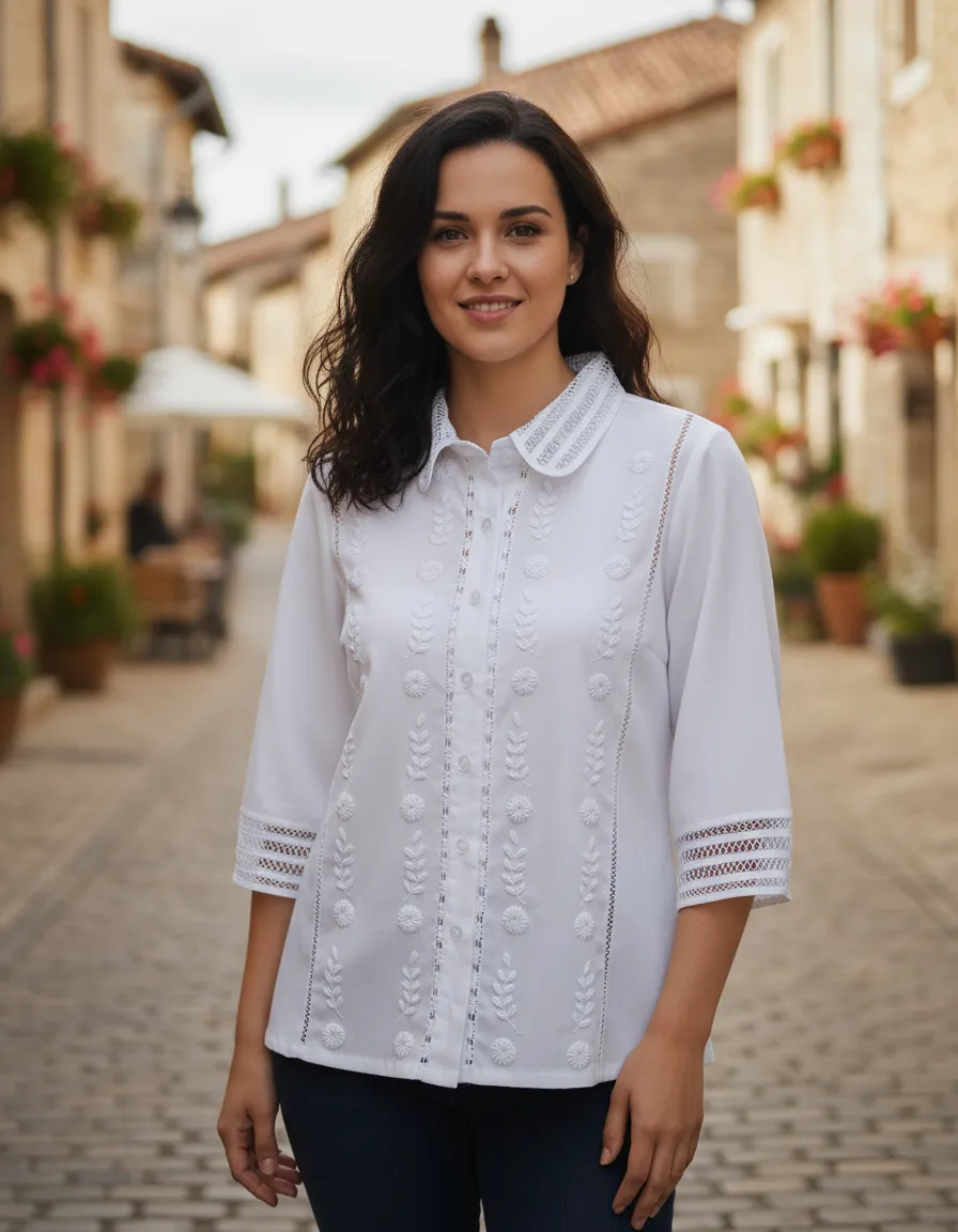La blusa Ruby Stela Bordados Cartago de la marca Edis es la elección perfecta para la mujer moderna que busca un estilo elegante y romántico. Confeccionada en lino, este modelo ofrece una sensación de frescura ideal para la temporada de primavera/verano, permitiendo que tu piel respire mientras mantienes un look sofisticado.