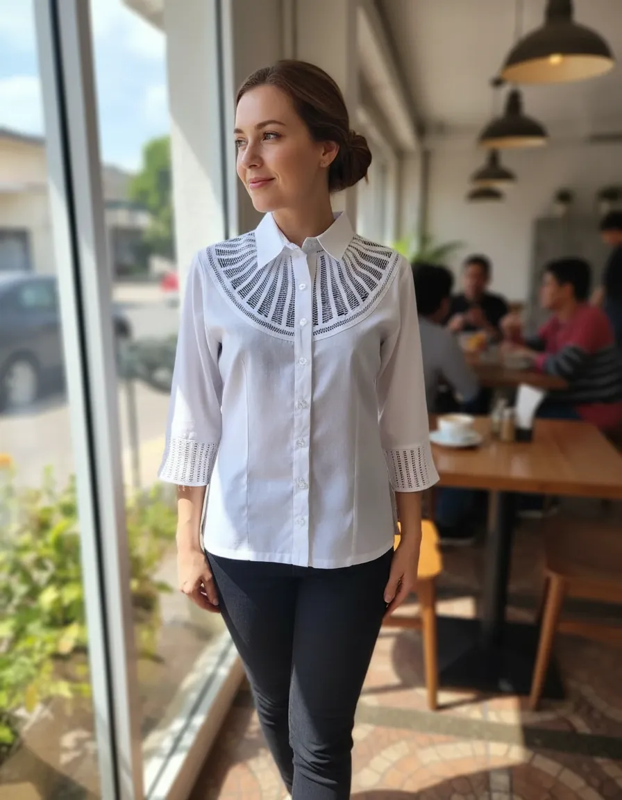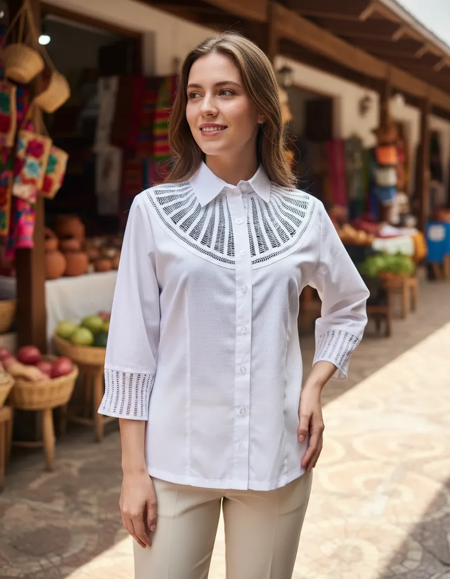 La blusa Hoja Rota Blanca de la marca Edis es la elección perfecta para quienes buscan un estilo elegante y romántico. Confeccionada en lino de alta calidad, esta prenda ofrece una sensación de frescura ideal para la temporada de primavera/verano. Su color blanco puro la convierte en una opción versátil que se adapta a diversas ocasiones, desde un día casual hasta un evento más formal.